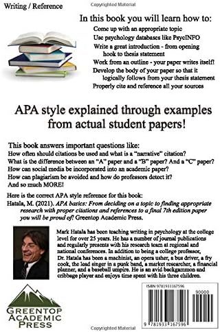 Apa Basics From Deciding On A Topic To Finding Appropriate Research With Proper Citations And References To A Final 7th Edition Paper You Will Be Proud Of Hatala Mark 9781933167596 Amazon Com Books